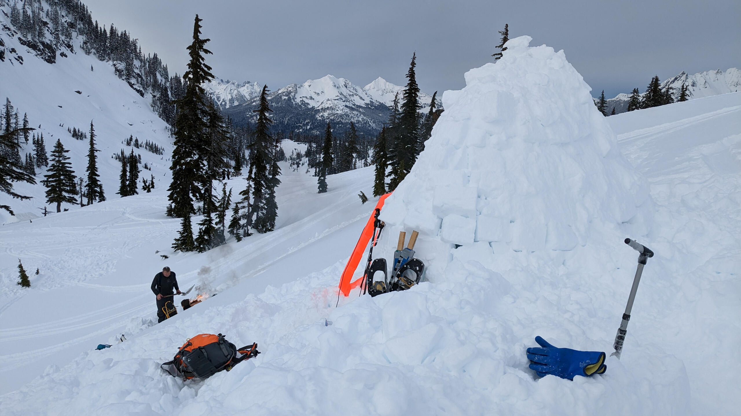 Building an igloo or digging a snow cave requires the right conditions, and some additional gear because you're more in contact with the snow than you would be snowshoeing or mountaineering.